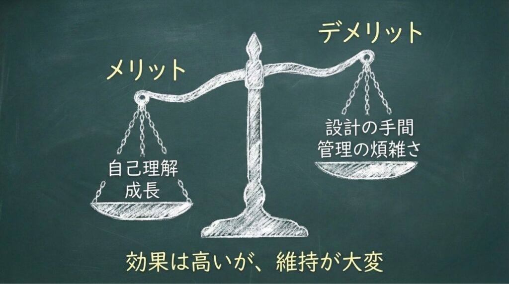 pile-up-plannerを実践するなかで感じやすいデメリットについて、「どの部分をどう解消できるか」を整理しました。読者の皆さんが取りくみやすくなるよう、以下の点を意識しています。