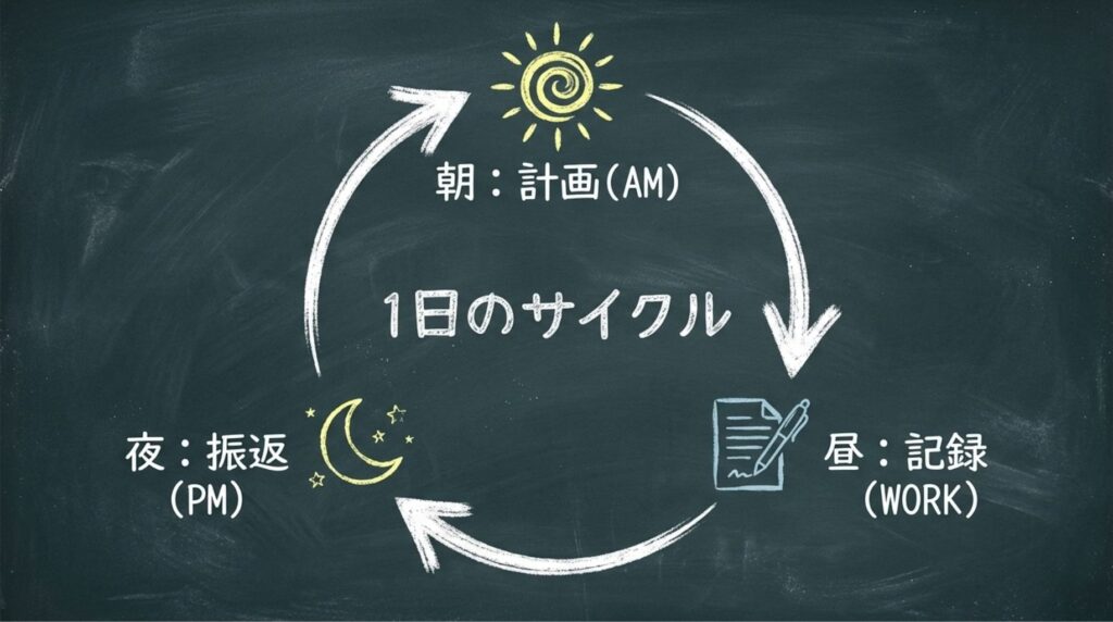 デイリーノートでは、毎日以下の流れで進めていきます: