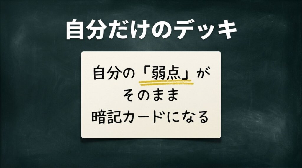 - 自分の弱点・間違えやすい点がそのままカードになる