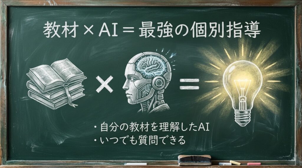 誰かに聞ければ一番早いけれど、いつでもそばに先生がいるわけではない。そんなときに、自分が使っている教材やメモを「読んだうえで」答えてくれる AI がいると、「自分のための説明」が得られて効率が上がります。